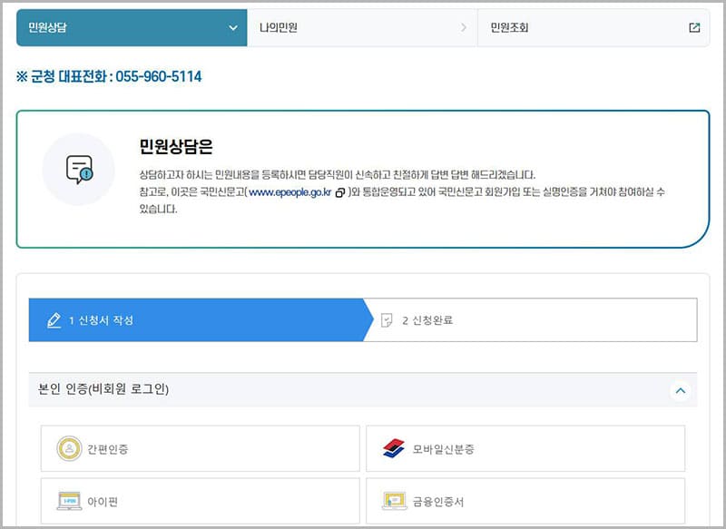 전국 지자체를 통해 개별적으로 제공되고 있던 온라인 민원신고센터 서비스가 정부 통합 국민신문고로 통합되었습니다. 이에 따라 함양군청 민원신청 서비스는 정부 통합 서비스인 국민신문고(www.epeople.go.kr) 홈페이지와 연동을 통해 접수하실 수 있습니다.