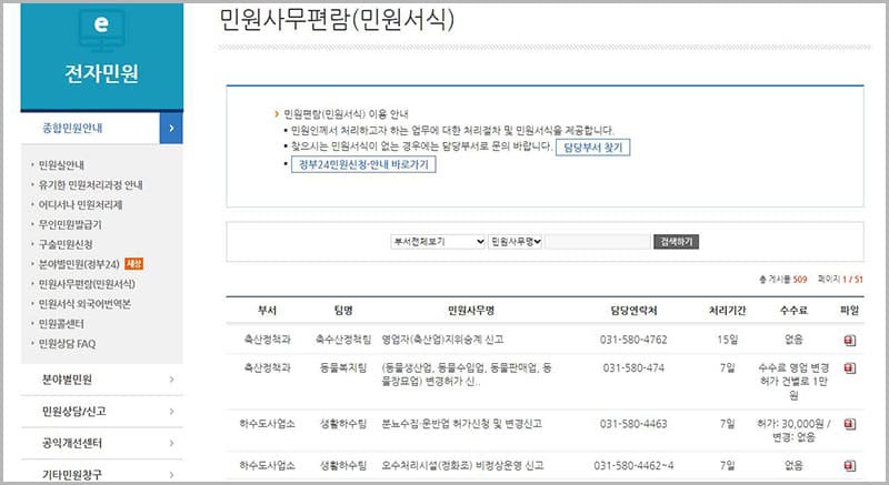 각종 민원 신청을 할 때 필요한 서식들을 모아 놓은 곳입니다. 민원시 관련 서식을 다운로드하여 작성 후 신청하시면 됩니다.