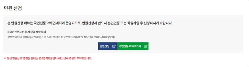 | 민원 신청 | 민원 결과 | 민원 신고 | 민원 시책 |