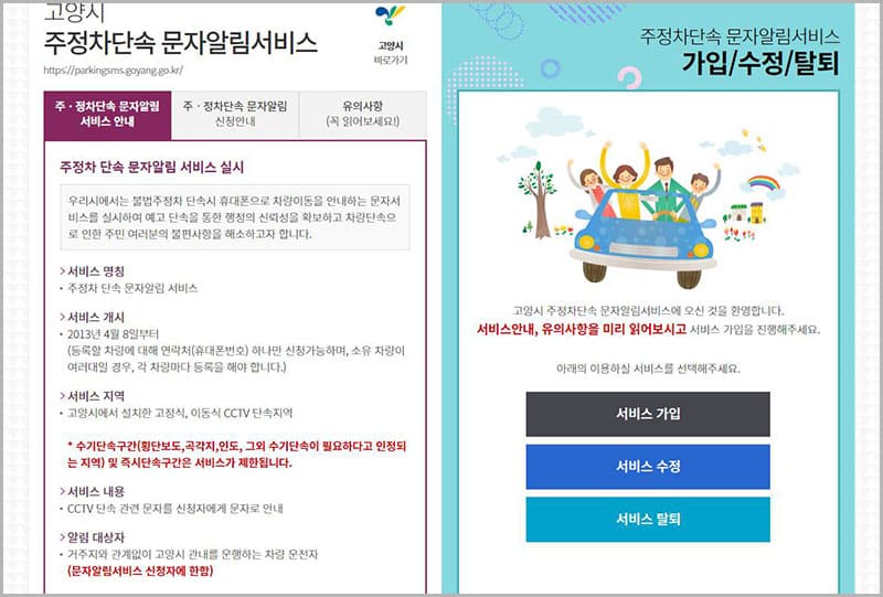 고양시에 거주하고 있는 분이나 방문하시는 분들은 “고양시 주정차단속 문자 알림 서비스”를 신청하시면 더욱 편리합니다. 주정차 단속지역에 머무를 경우 미리 문자 알림을 보내주고 있어서 빠르게 단속 지역에서 벗어날 수 있습니다.