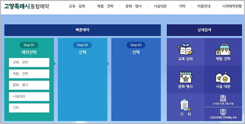 고양시에서는 시민들을 위한 수준 높은 교육의 기회를 위해 다양한 커리큘럼을 갖춘 교육 및 강좌를 연중 진행하고 있으며, 정보화교육, 어학/인문, 미술/서예, 노래/댄스, 취미/공예, 음악/악기 등 원하는 교육들을 미리 예약할 수 있는 시스템을 운영하고 있습니다.