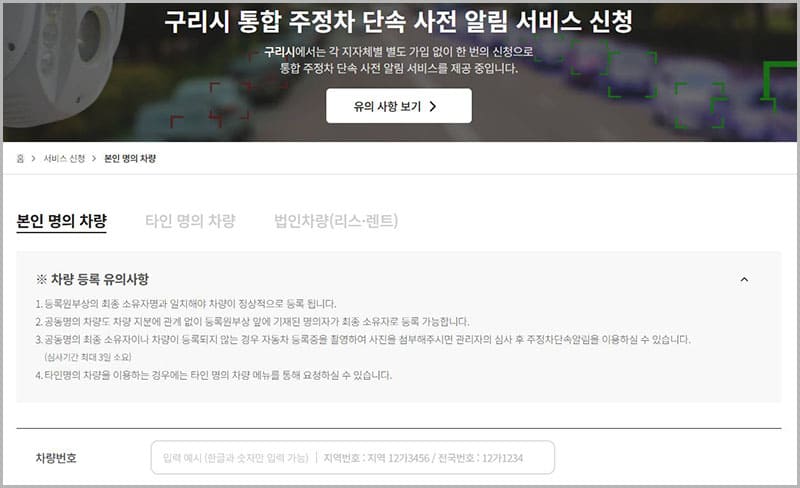 ✔️ 구리시 주정차단속 알림서비스 유의사항