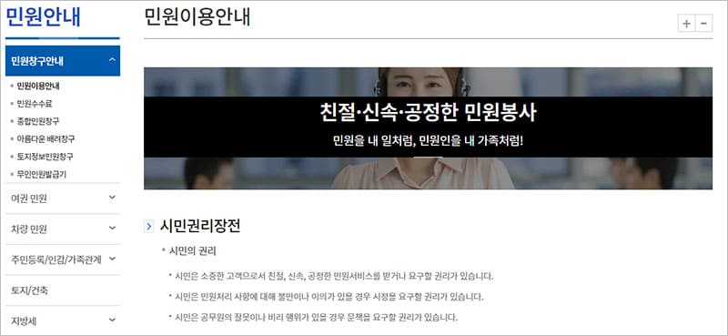 1. 민원 안내: 다양한 민원 서비스와 관련 정보 제공