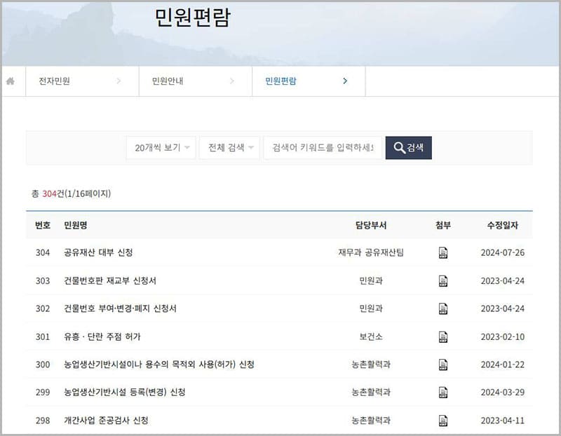 민원 편람 서식 다운로드 자료실