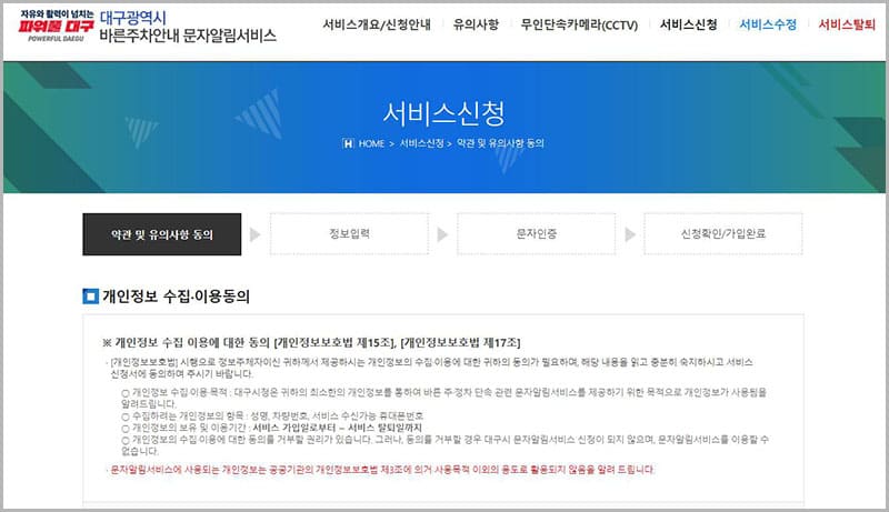 대구시 중구 주정차단속 문자알림 서비스 통합 가입