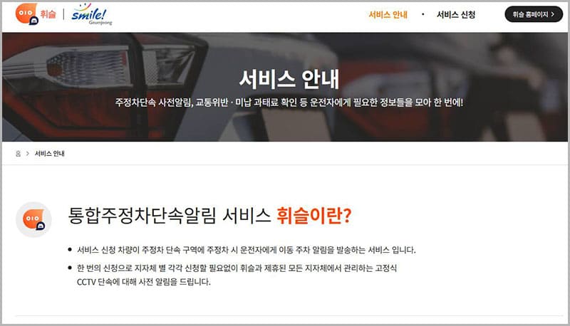 - 상습 반복적인 주정차 단속 위반 차량은 서비스가 제한될 수 있으니 주의하시기 바랍니다.