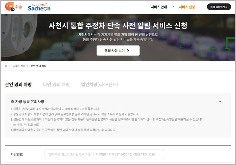 ✔️ 사천시 주정차단속 알림서비스 유의사항