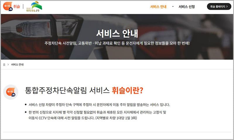 - 상습 반복적인 주정차 단속 위반 차량은 서비스가 제한될 수 있으니 주의하시기 바랍니다.