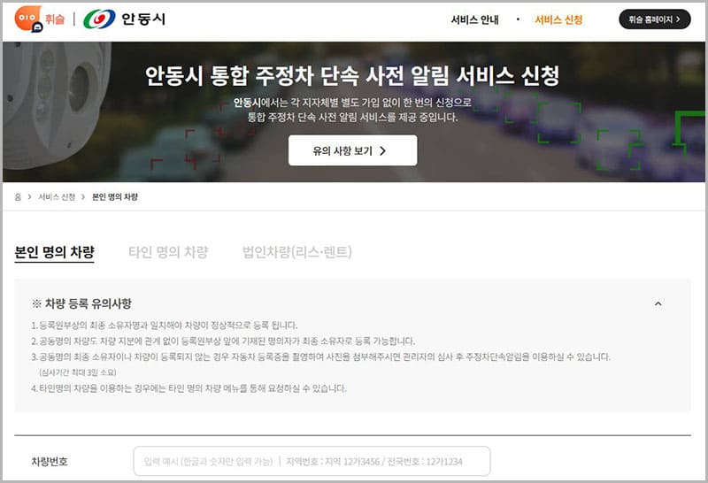 ✔️ 안동시 주정차단속 알림서비스 유의사항