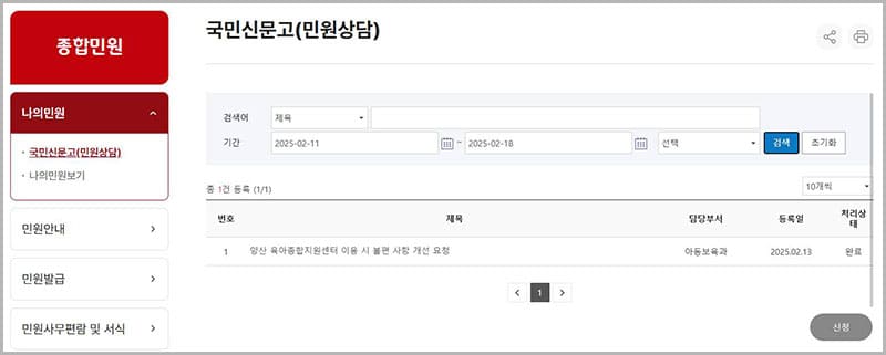 전국 지자체를 통해 개별적으로 제공되고 있던 온라인 민원신고센터 서비스가 정부 통합 국민신문고로 통합되었습니다. 이에 따라 양산시청 민원신청 서비스는 정부 통합 서비스인 국민신문고(www.epeople.go.kr) 홈페이지와 연동을 통해 접수하실 수 있습니다.