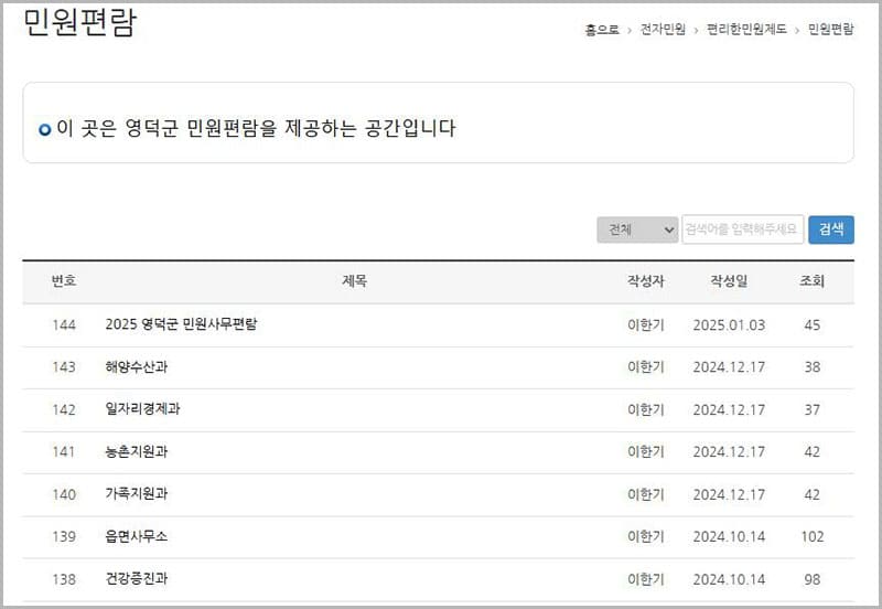 영덕군청 민원 신청 (국민신문고) 안내 바로가기