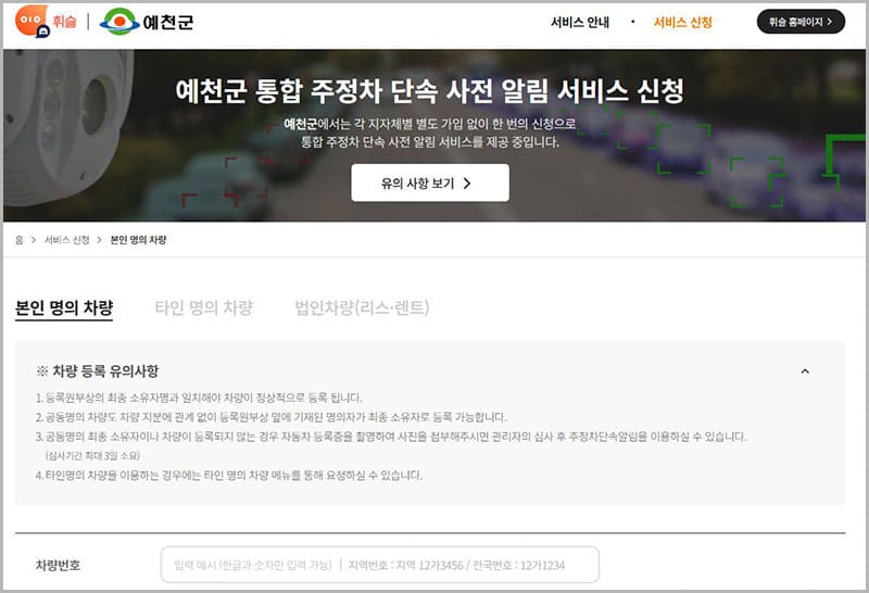 ✔️ 예천군 주정차단속 알림서비스 유의사항