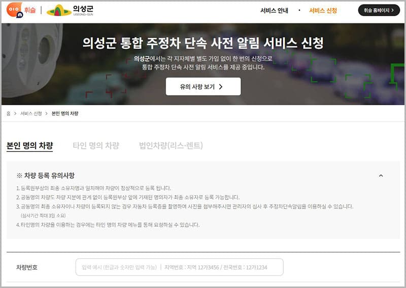 ✔️ 의성군 주정차단속 알림서비스 유의사항