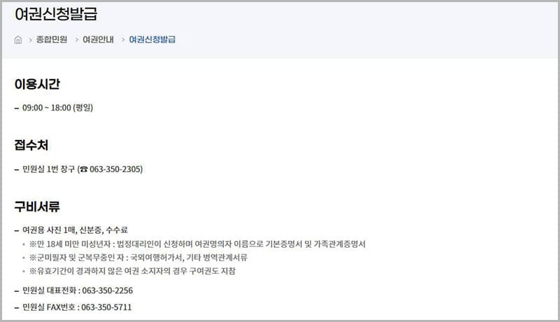 - 토/일/공휴일은 여권 접수 및 교부 등 여권 업무처리를 하지 않습니다.