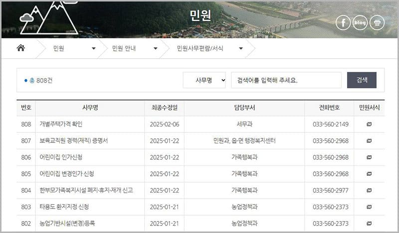 정선군청 민원 신청 (국민신문고) 안내 바로가기