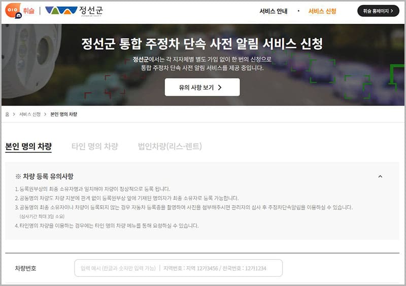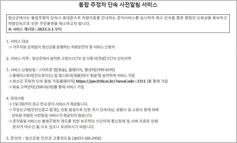 ✔️ 정선군 주정차단속 알림서비스 유의사항