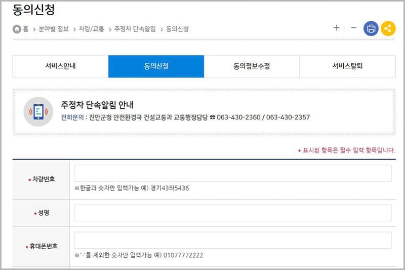 진안군 CCTV 주정차단속 문자 알림 서비스 바로가기