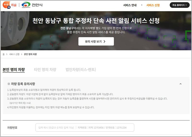 ✔️ 천안시 주정차단속 알림서비스 유의사항