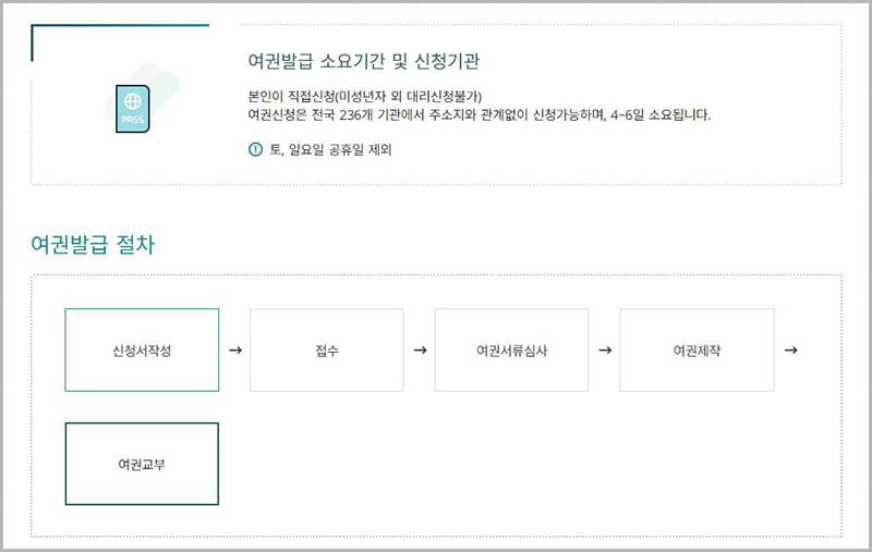 - 토/일/공휴일은 여권 접수 및 교부 등 여권 업무처리를 하지 않습니다.