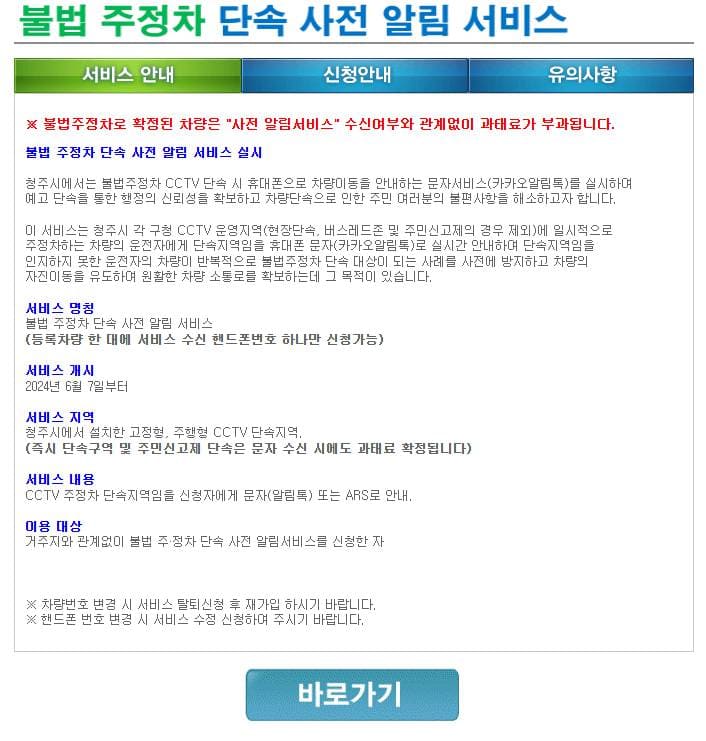✔️ 청주시 주정차단속 알림서비스 유의사항