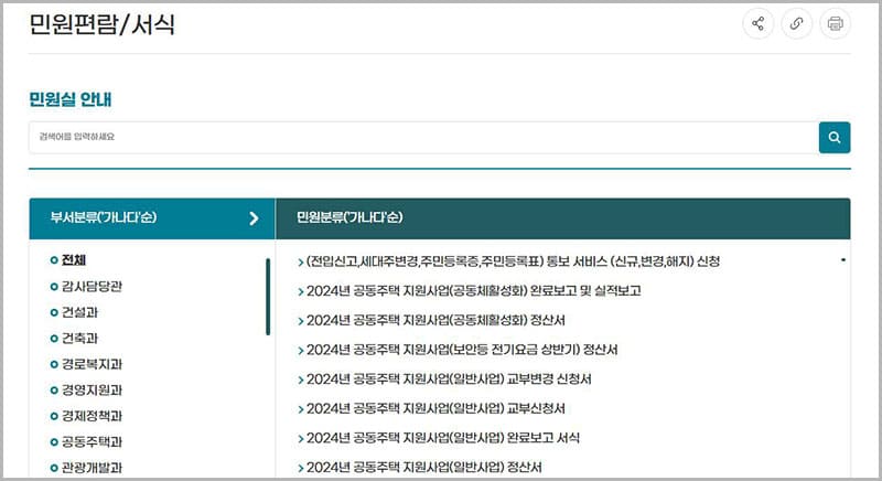각종 민원 신청을 할 때 필요한 서식들을 모아 놓은 곳입니다. 민원시 관련 서식을 다운로드하여 작성 후 신청하시면 됩니다.