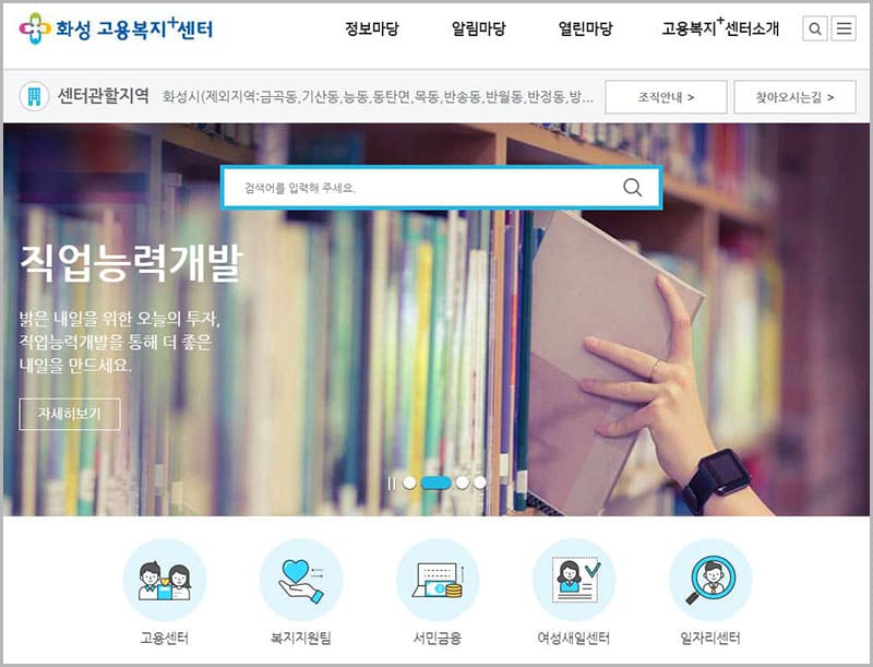 화성시는 시민들의 채용 기회 및 삶의 질 향상을 위한 다양한 사업을 진행하고 있으며, 그중에서 화성 고용복지센터를 통해 다양한 취업정보를 제공하고 있습니다. 조금이라도 더 많은 분들이 양질의 일자리를 얻을 수 있도록 고용센터, 복지지원팀, 서민금융, 여성새일센터, 일자리센터 등의 정보를 제공하고 있습니다.
